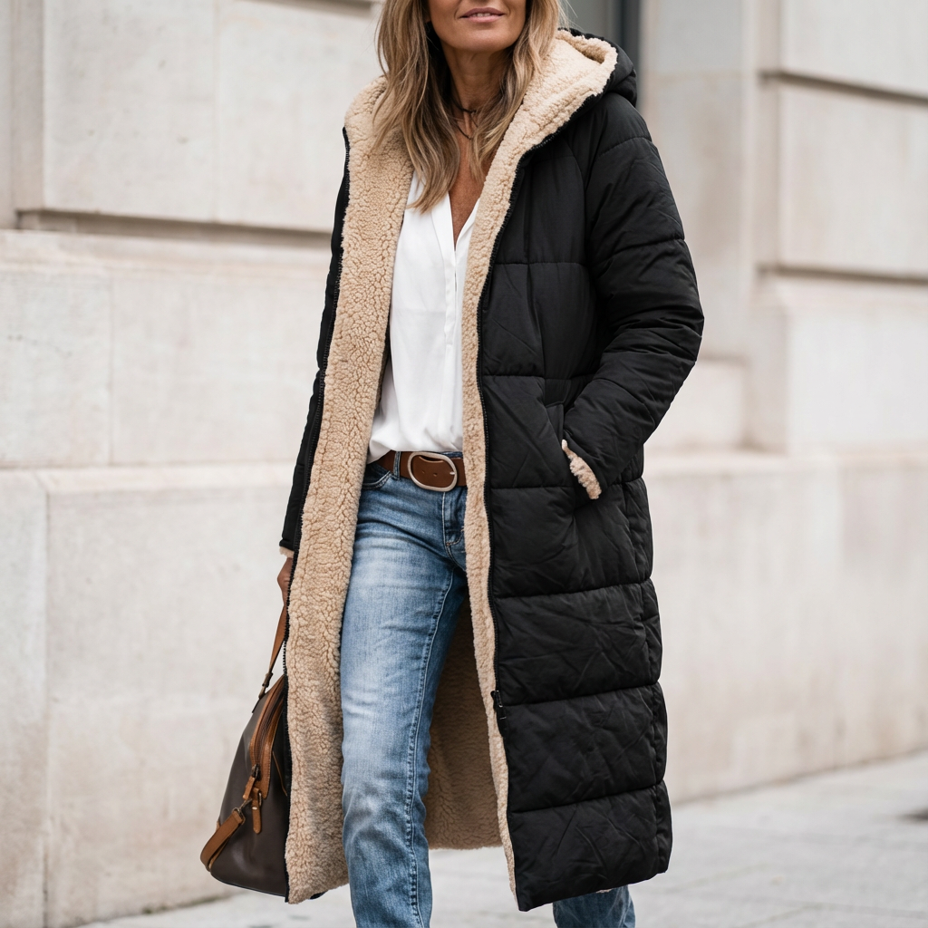 Puffercoat | Teddyfutter – Langer Schnitt – Damen – Winter 2