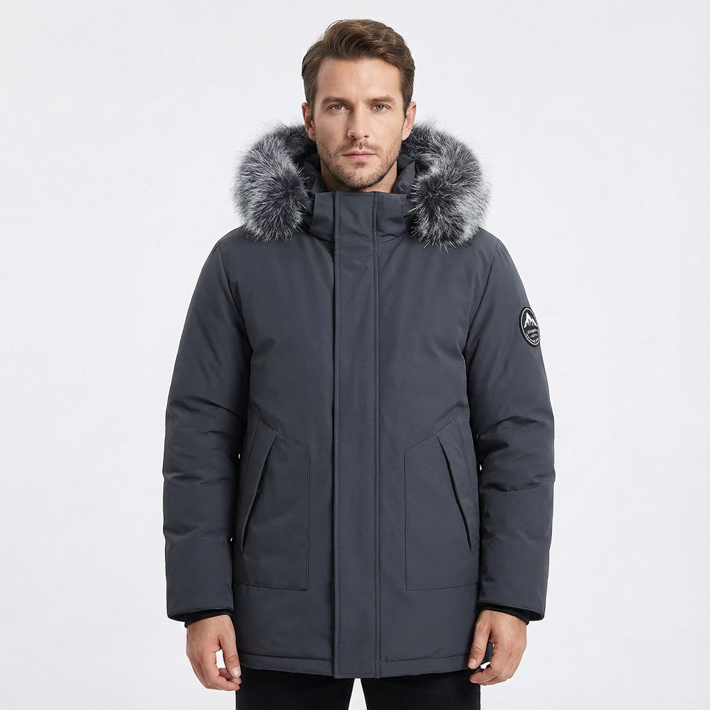 Stefan - Bequeme und Wärme Daunenjacke mit Fellkapuze für Herren